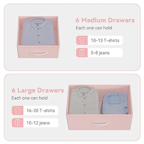 Garvee Dresser for Bedroom with 12 Drawer, Entryway, Storage Organizer Unit with Fabric, Sturdy Metal Frame, Wood Tabletop, Easy Pull Handle - Pink
