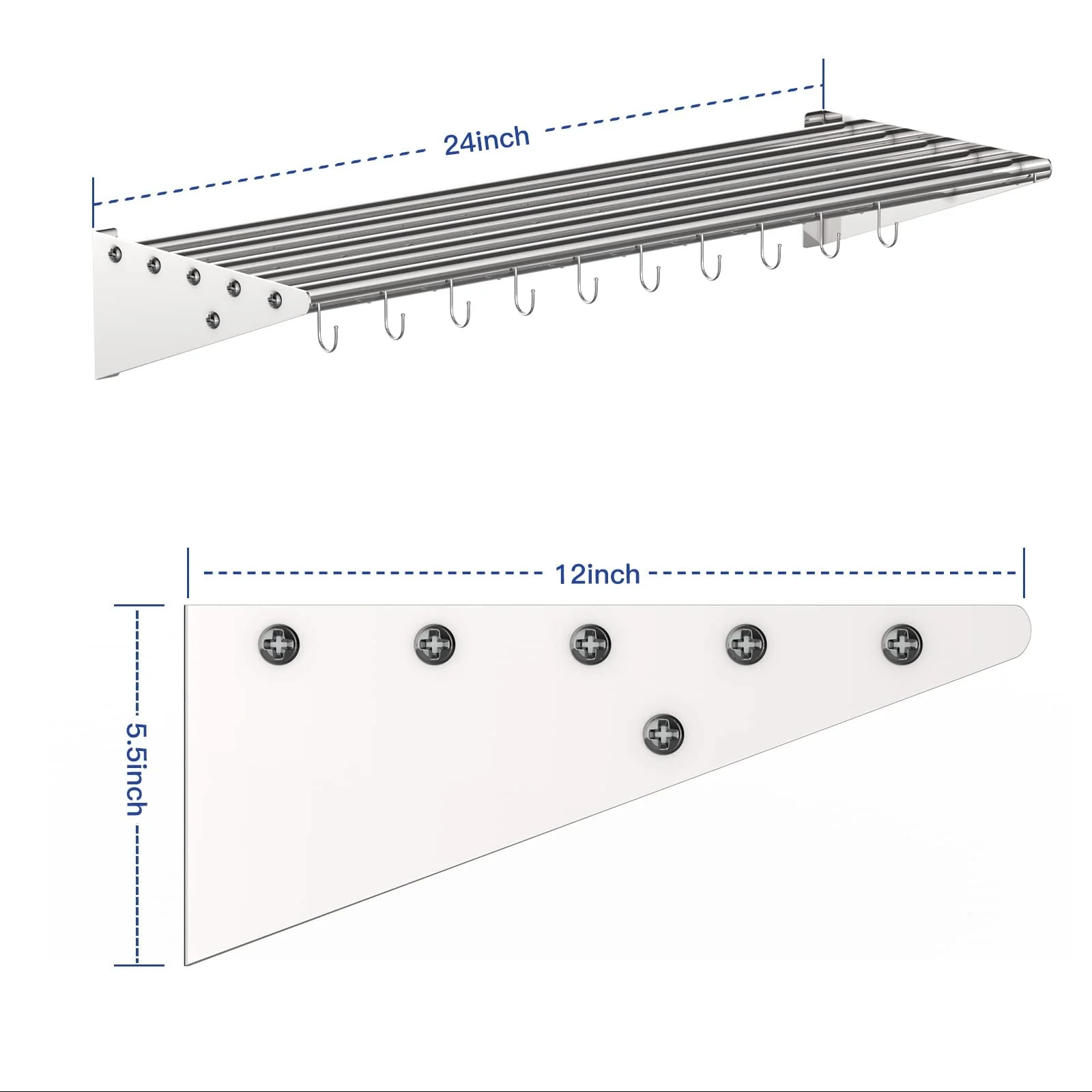 - 【Greater Structural Stability】:The wall mounted shelf adopt a stable triangular structure design, which is more stable than ordinary stainless steel shelves and can effectively prevent your hanging heavy objects from falling.